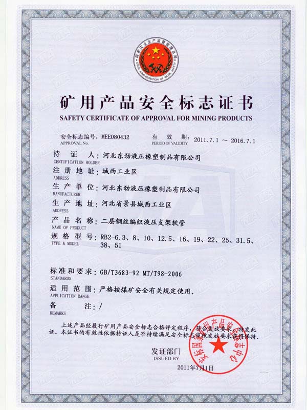 • 鋼編管國際標準產(chǎn)品標志證書